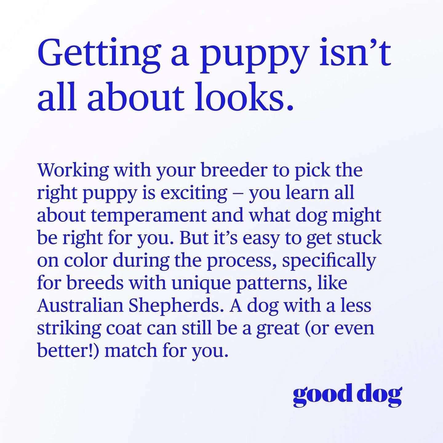 We also encourage people to get a puppy based on their temperament, not color. After all, color isn't forever, but temperament is!
